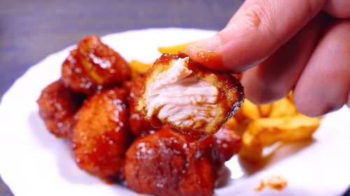 Tasty food recipes for dinner with chicken. cooking videos. how to make simple snacks for begginers. Barbecue chicken breasts. Very easy to make. Just bread the chicken, fry it an mix with bbq sauce. Delicius!!